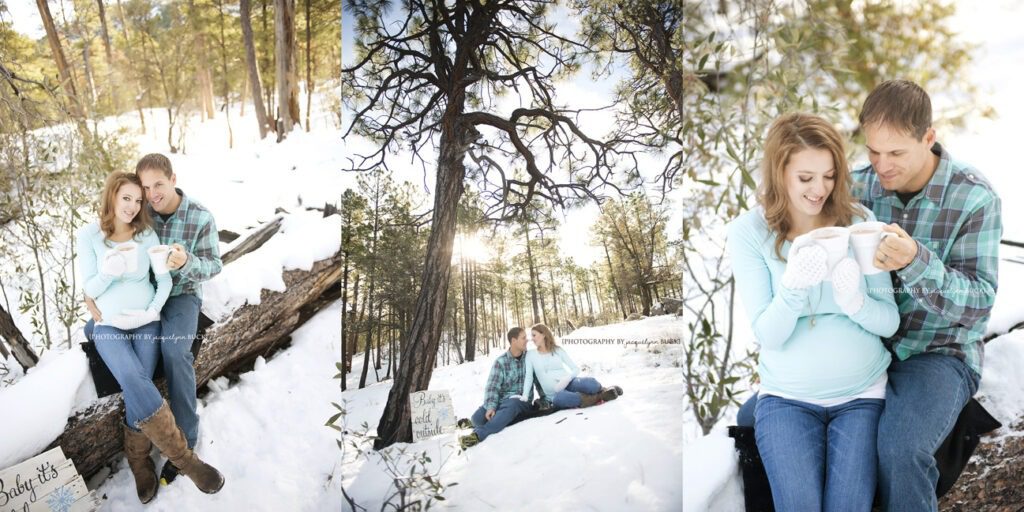 It was snow-watch 2014 waiting to see if we could make this winter wonderland maternity session happen, and we did! What perfect colors, weather and oh! sun shining through to light up the frozen terrain! Mt. Lemmon in the winter is perfect when it snows. And this was perfect. So, baby, when it’s cold outside, there’s nothing better to stay warm than cuddling up with some hot chocolate and the one you love, waiting for baby to arrive!