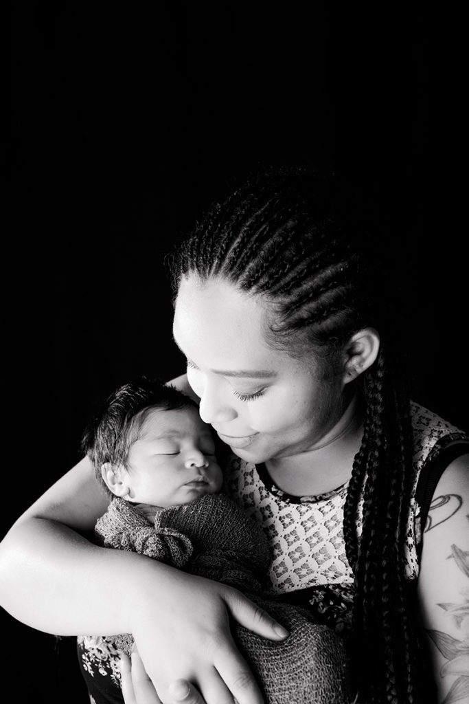 For family images during newborn sessions, I decided to change up the backdrop to solid black to create some beautifully classic black and white photos. Using studio light and a black backdrop is really a great way to focus the light exactly where I want it and get timeless images!