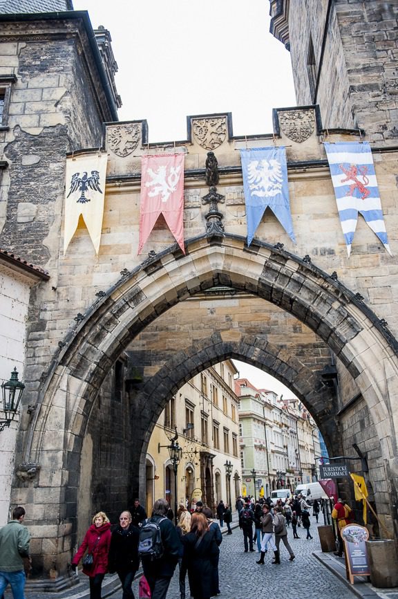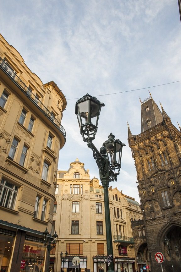 The Powder Tower Gate “is a gate which separates Prague’s New Town from the Old Town. Back in the 11th century it was one of the 13 gates through which Prague’s citizens could enter the Old Town”. http://www.praguego.com/attractions/powder-tower-gate/