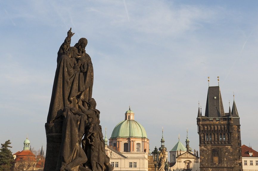 Because there are so many things to do in Prague, I didn’t have time to tour Prague Castle, but I surely did photograph it from the heart of the city. I crossed the Charles Bridge on foot several times, enjoying and photographing the many street performers who frequented the sidelines. I went inside St. Vitus Cathedral (because that’s how I do) and walked all around the town, over and under the Powder Tower, through throngs of people, stopping to see the Astronomical clock do its thing,